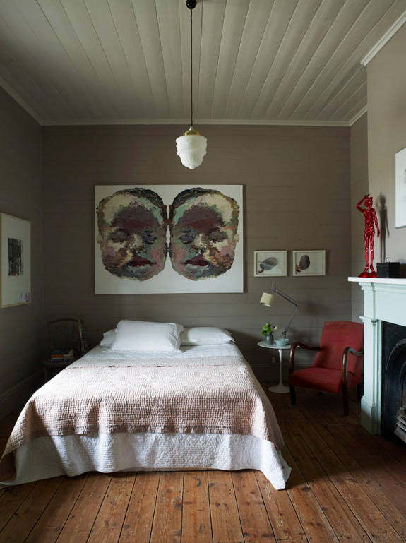 The first few photos are of the divine Megan Morton's old house. I don't know how she could part with it. The paintings (old woman, baby heads and budgerigar) are by Ben Quilty. Well I know the babies and bird are and I'm guessing the portrait although I can't find it archived anywhere.