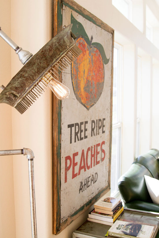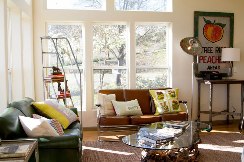 DeWayne Lumpkin had quite a challenge put upon him. He was given $15,000 to completely furnish this 2800 sq ft guest house in the middle of southern Oregon wine country (it only had beds, a leather sofa and four wooden dining room chairs). The owners, David Gremmels & Cary Bryant who own Rogue Creamery, requested an industrial, agricultural style that could hold up to use by families, friends and even strangers through airbnb (listing here). DeWayne completed the project in 5 weeks and had to purchase EVERYTHING, from dishes, silverware, glassware, linens for bed, bath & kitchen, alarm clocks, hair dryers, etc….everything you need to stay and not want to leave. And it’s so fantasticly vintage/industrial I would absolutely love to rent this place and never leave. (Photos by Nikita Lee)