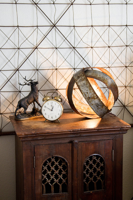 In the “Cowboy” bedroom, between the two twin beds, there are a few round cheese molds welded together into an orb and electrified from the inside – we call this one “tumbleweed” and it throws great shadows around the room.