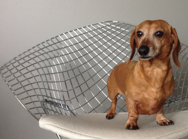 Pets on Furniture is one of my favorite parts of your site so I had to send you our 9 year old dachshund, Chili, posing on the Bertoia Diamond chair.