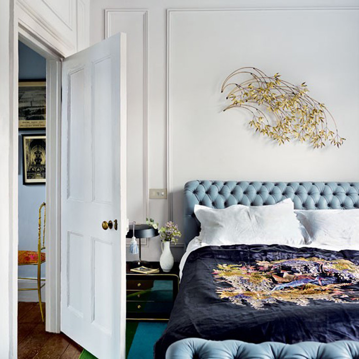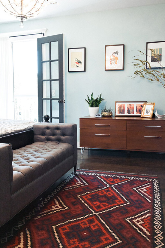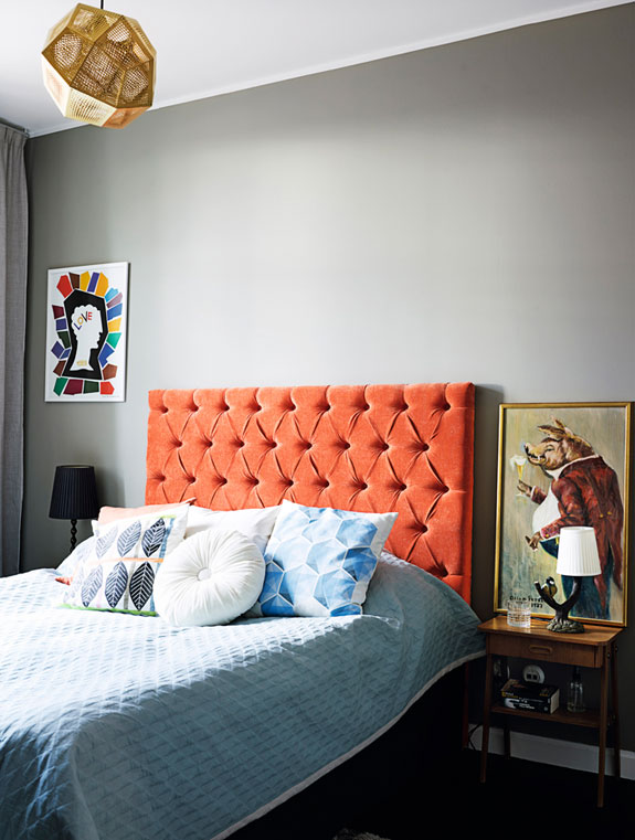 love the orange headboard and the first blue chair – great post kim!