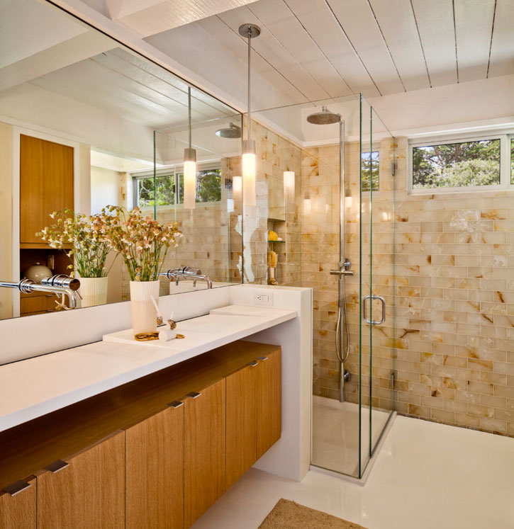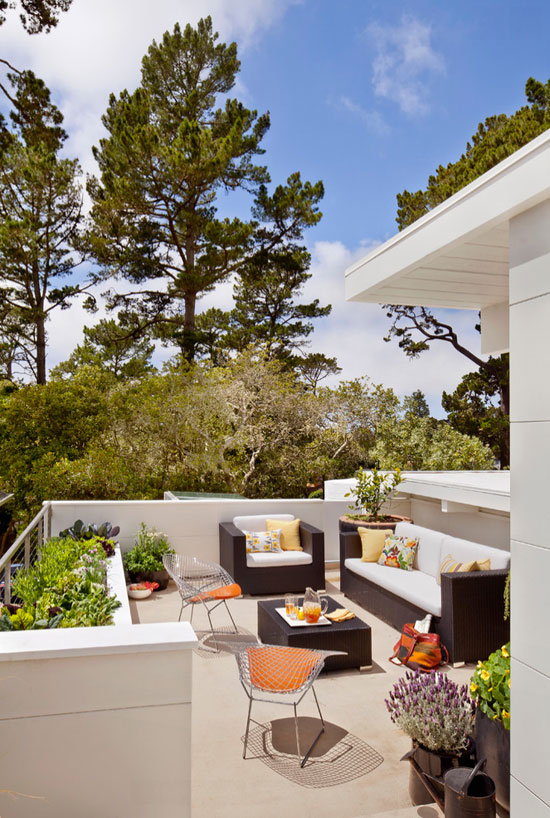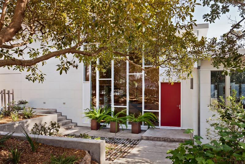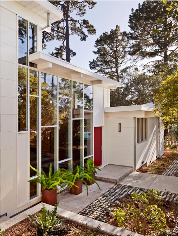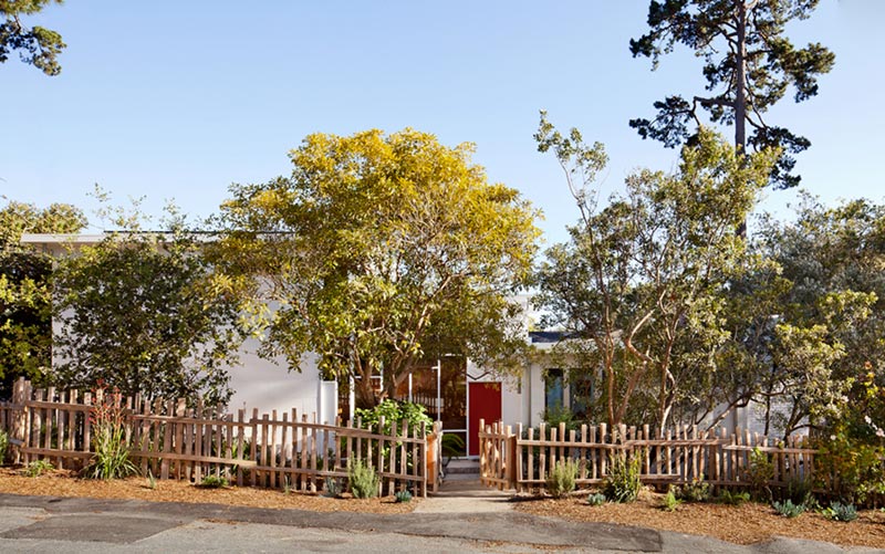 My love for mid-century homes continues. Today I bring you a home in Carmel, Califonia that was renovated by architects Carver + Schicketanz. The owners were looking for an extra bedroom as well as a new kitchen and bathrooms. It is now the perfect blend of mid-century and modern, in its architecture as well as furnishings. I am swooning over the windows by the front entrance, and even the “rickety” fence.