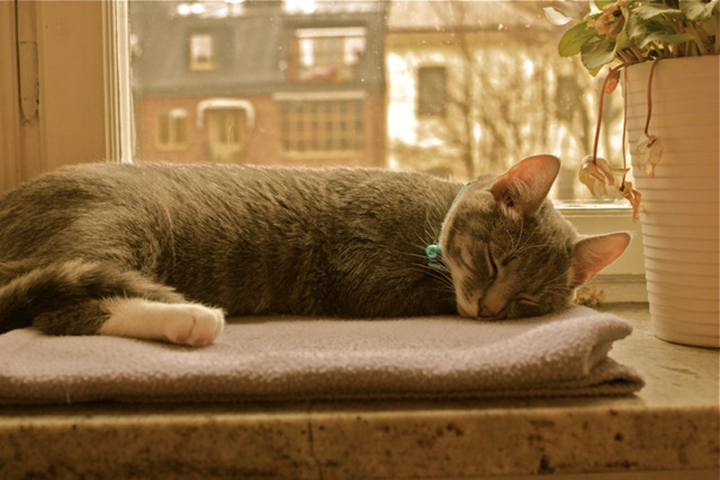 Swedish Sylvester looking almost too cute snoozing on the marble windowsill, nice.