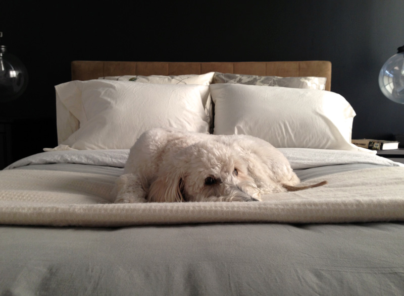Winnie loves lounging on our bed, especially on our Australian alpaca blanket.