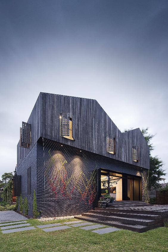 This addition to a Edwardian house in a suburb of Melbourne with a heritage restrictions saw architects Jackson Clements Burrows choose a common building material, brick, but contrast old red with new black.The twin peaked roof follows the double valley hip roof line of the original building but interprets it in a modern way. Once inside the contemporary lines of the new spaces bring this family home into the new century.