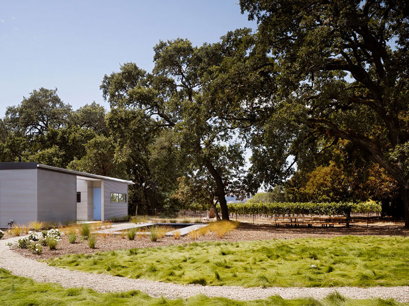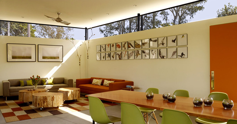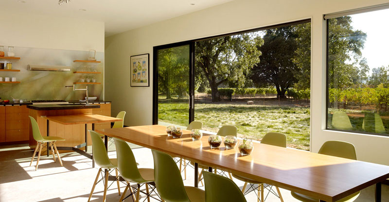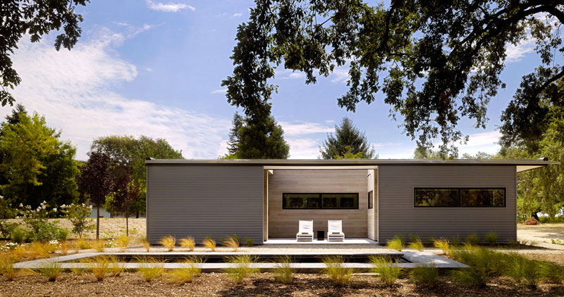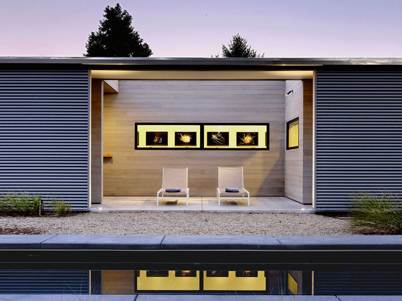 Have you ever wondered what the vacation home of an architect might look like? Neil Schwartz of Schwartz and Architecture designed this Hydeaway house in Sonona, California for himself, his spouse and their dogs, with the hopes of eventually retiring here. It’s 2000 sq ft of midcentury modernism on one acre surrounded by vineyards. The main house sleeps six and a separate guest house sleeps two. Oh – and you can rent it. 🙂