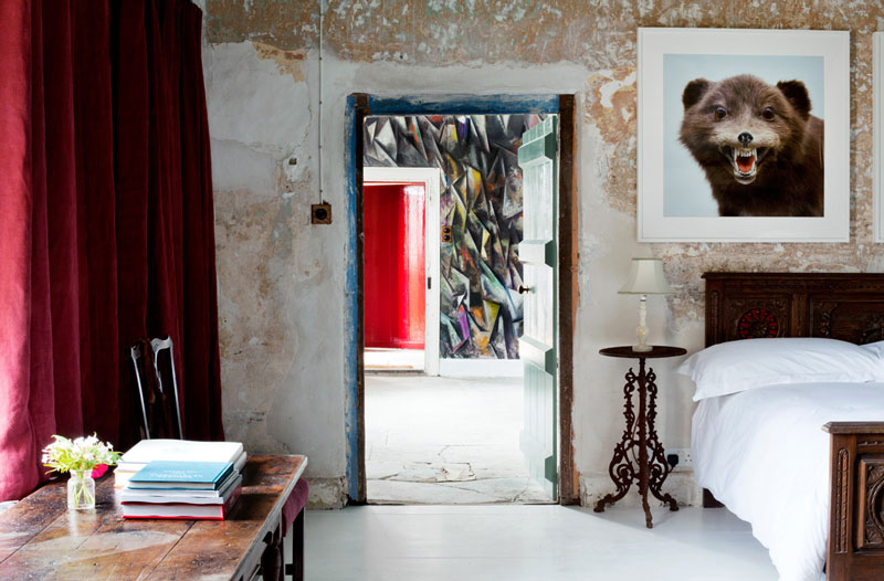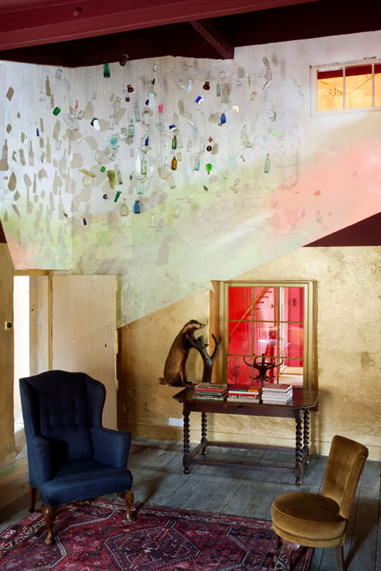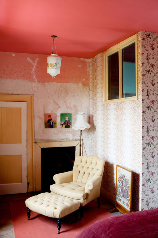 Here is a little bonus project of Laplace for you that I found very intriguing. This 18th century derelict farmhouse in Somerset, England was purchased by Iwan and Manuela Wirth of Hauser & Wirth art galleries who wanted a place for private guests of the gallery as well as space for art installations. Luis Laplace had a gem on his hands to work with: In what is now the kitchen, a fake wall was dismantled to reveal an enormous hearth fireplace. Faded lineleum was covering flagstone floors. When builders began peeling back layers of paint they uncovered pale pink, dusty blue, sea green, and these colours became the colour scheme. It is magical. (Set to open July 15)