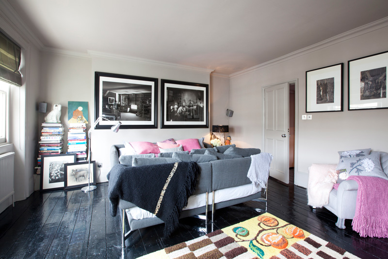 Love the Abigail Ahern rasta poufs and woven throw.