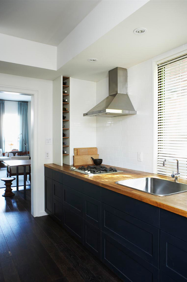 I would like to introduce you to Mazen El-Abdallah, an interior designer from Toronto who has seriously got it going on. In these photos you will see how Mazen has modernized and stylized 2 very small Victorian rowhouses (the first is a 900 sq ft, the second is 11 ft wide) and made them seriously cool. The entryway in the photo above is perfection and going in my inspiration folder. (Photos by Angus Fergusson and Michael Graydon)