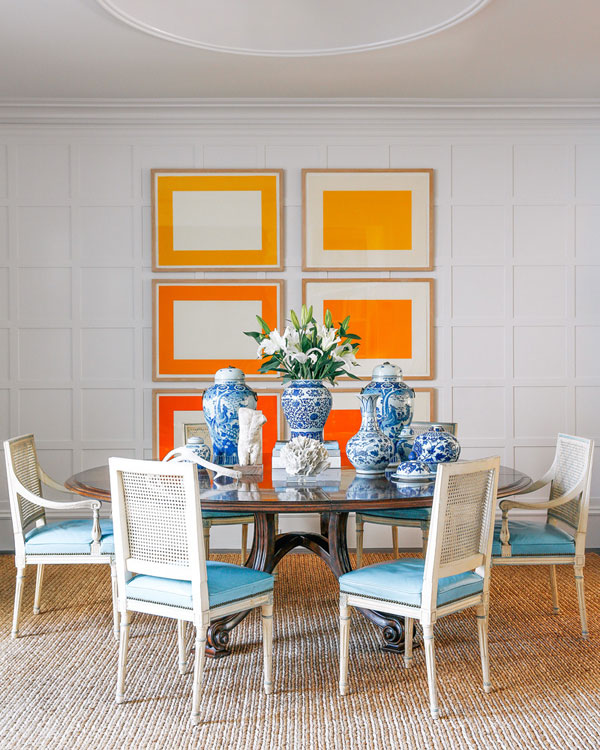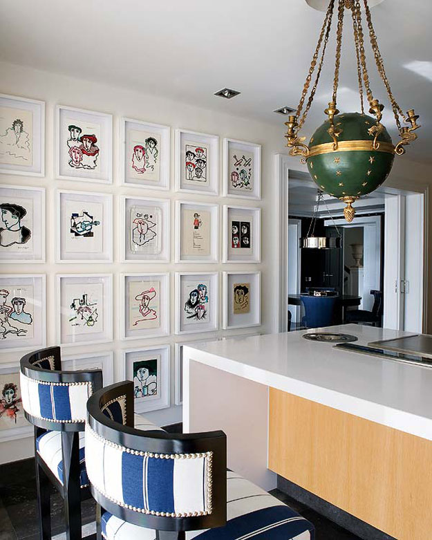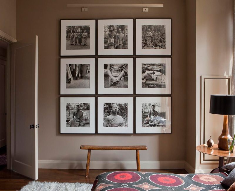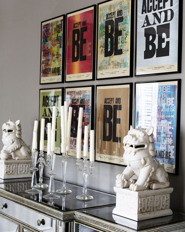 Another way to add drama with art – a grouping of prints. When hung in a grid the impact is POW!