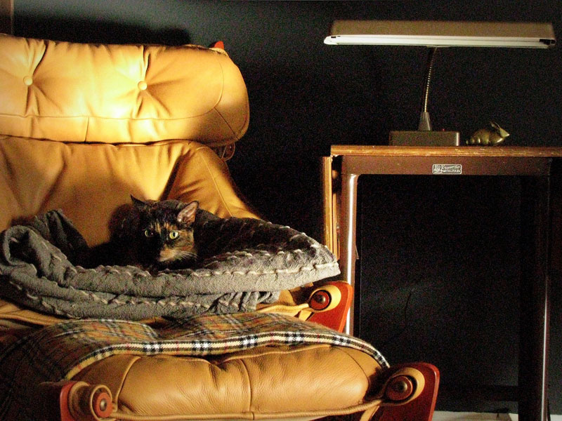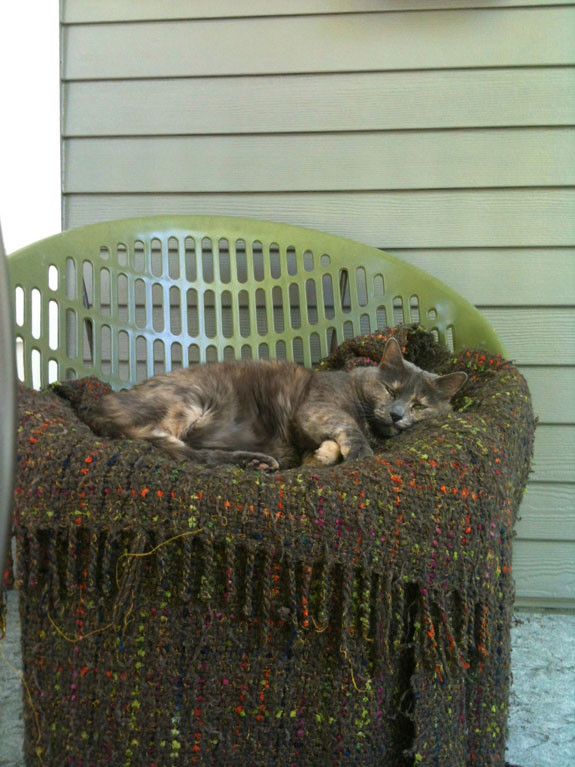 This is our cat Nico snoozing in the late May afternoon sun on our vintage Solair Chair.