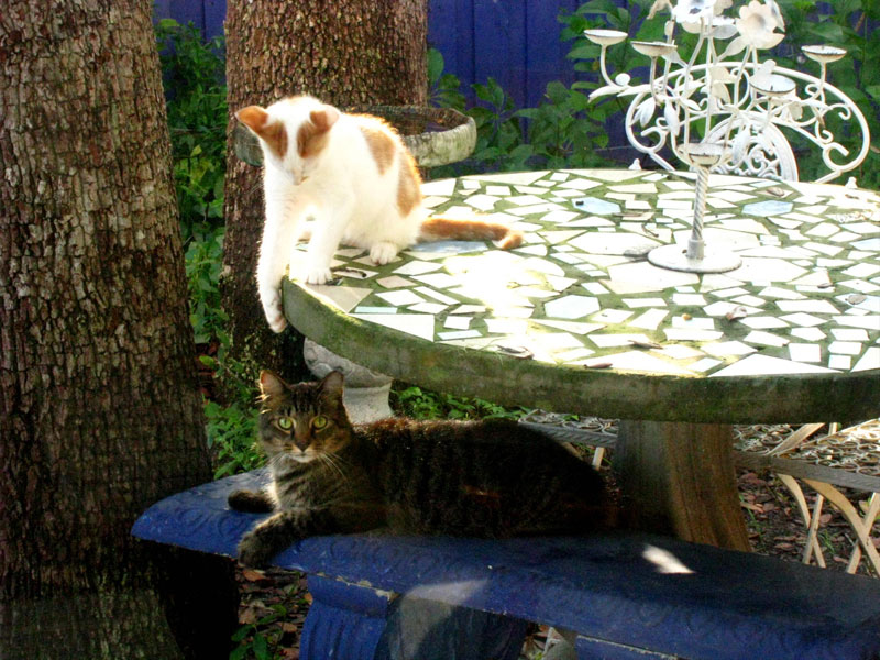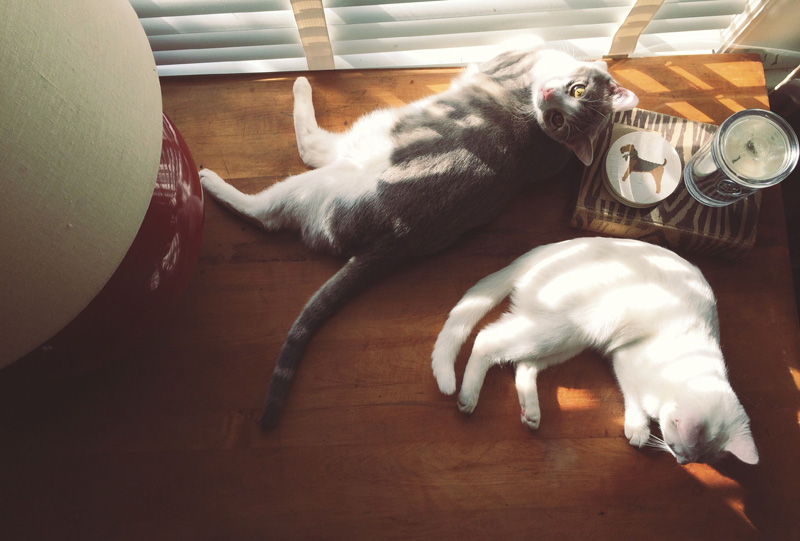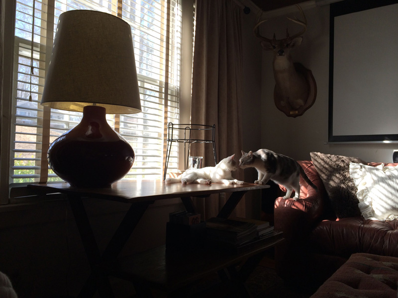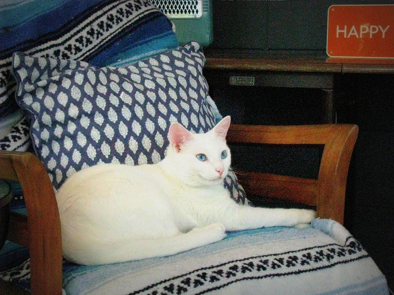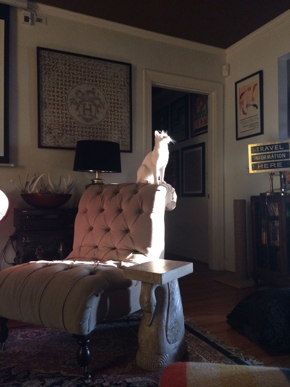 These are my kitties on all sorts of furniture. Pony (solid white cat) and Rocket Long (her brother) 🙂