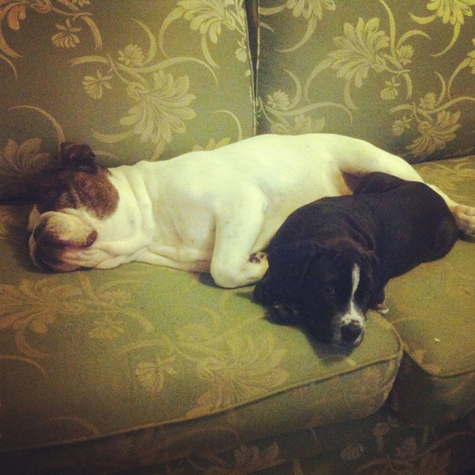 3. My amazingly gorgeous Bulldog Ellie-mae who is sadly no longer with us, she was an ancient (for a bulldog) 13 years old when she went to doggy heaven, next to her is Lulu who has taken on the job of consoling best mate amazingly 🙂