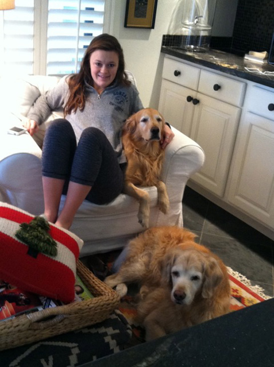 The dog in chair is Lilly, very old dog on floor Sadie, & cat Jean Louise (J Lo)….plus teenage daughter Alicia!