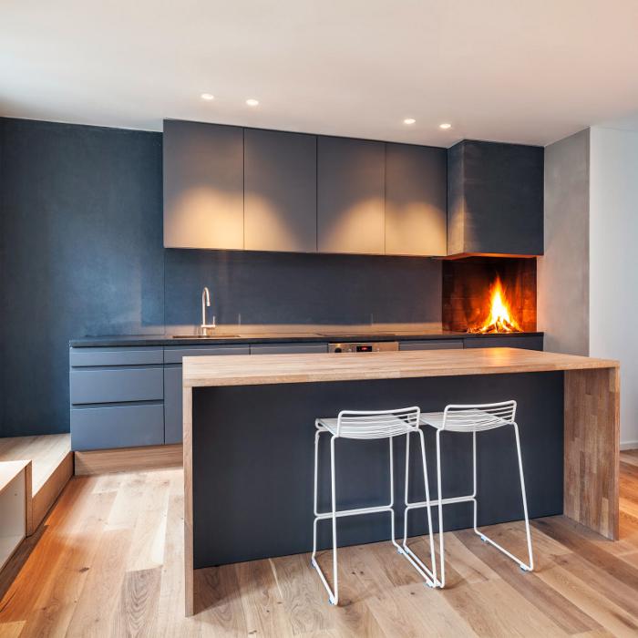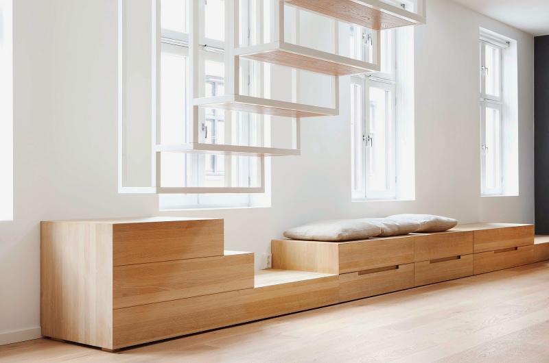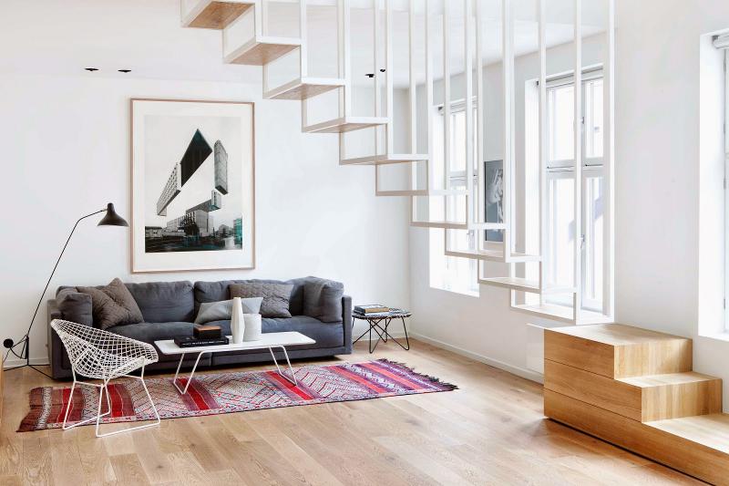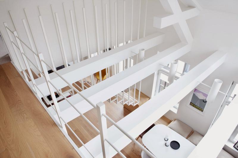 London and Oslo based Haptic Architects have reached into the unused loft above this top floor Olso apartment to create a light filled home. Vertical lines heighten the space while positive and negative space define the areas in otherwise open plan living. File away the staircase in your inspiration folders. Yes I know not to code in many countries but a work of art, a domestic sculpture. Inspiration doesn’t always have to be practical. A dream, a fleeting thought. A joy. Like the fireplace in the kitchen. The true hearth in the home.