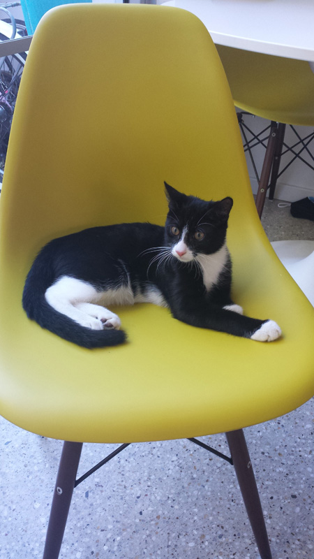 This is my main squeeze Denzel who we got from an animal shelter in Glebe. Only 10 months old, he has a keen eye for furniture and loves my Eames DSW more than any chair in the house