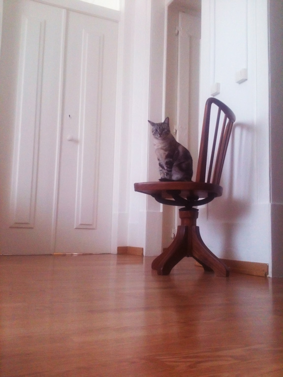 This is Zézinho, a one-year old “Royal Street Cat” in a unusual and quiet saturday morning on our office chair.