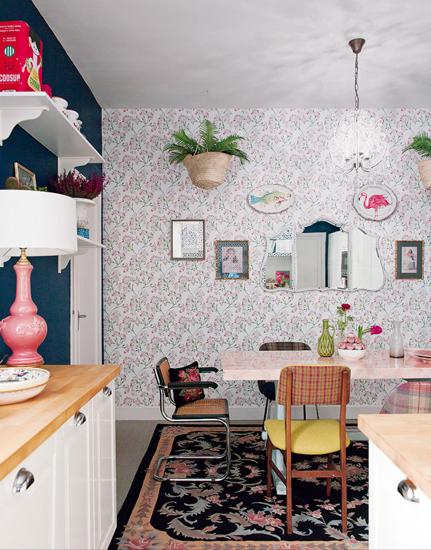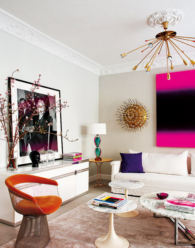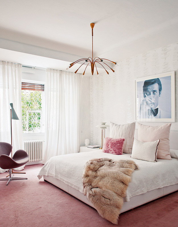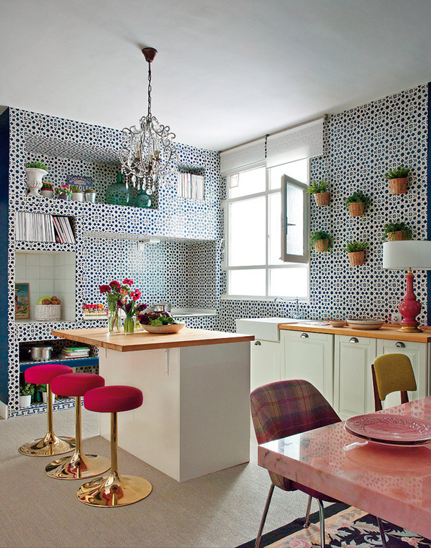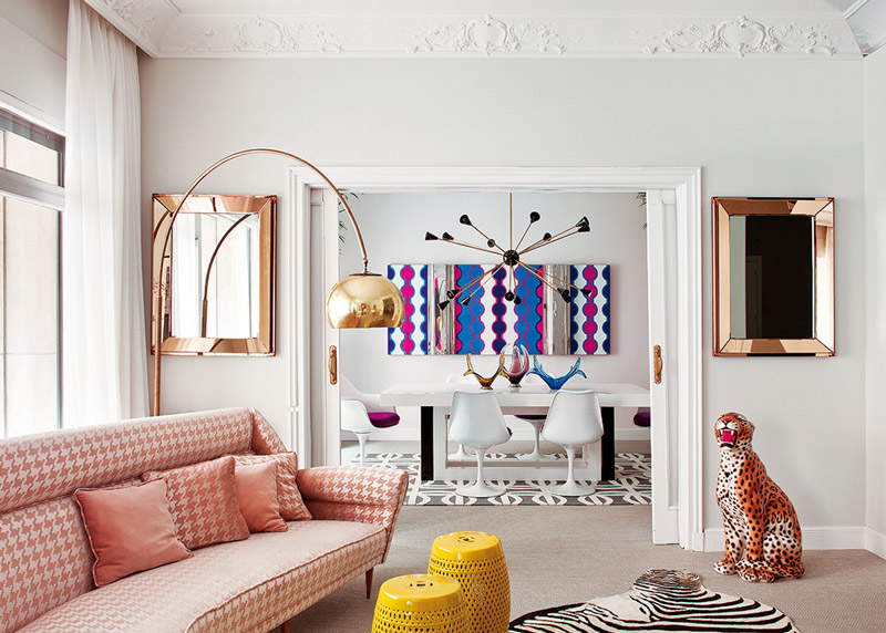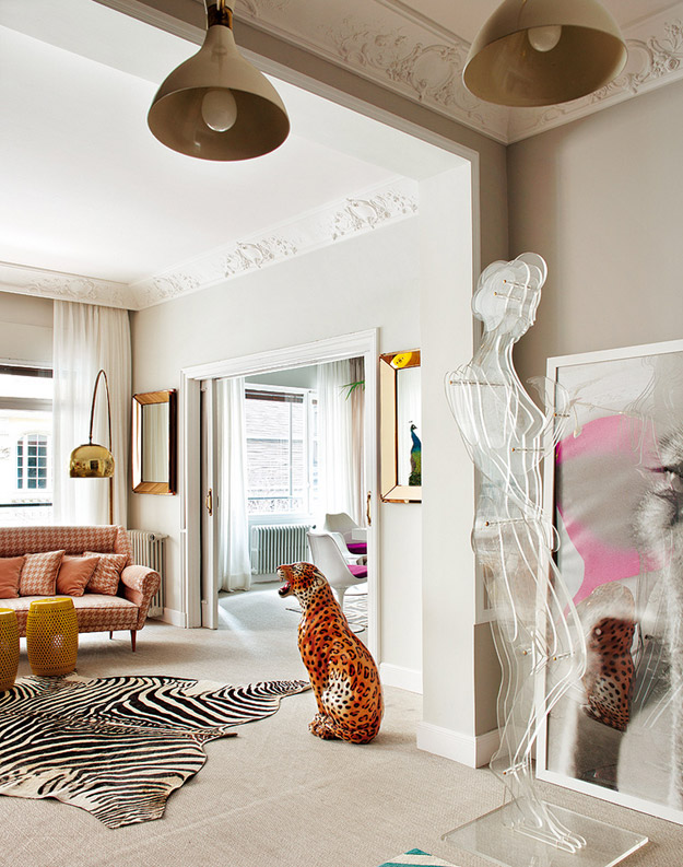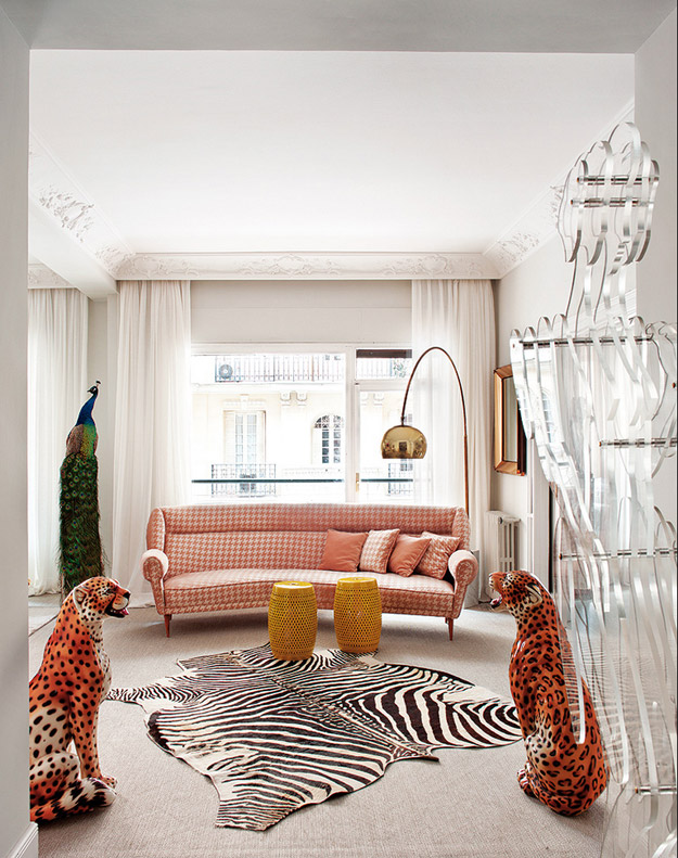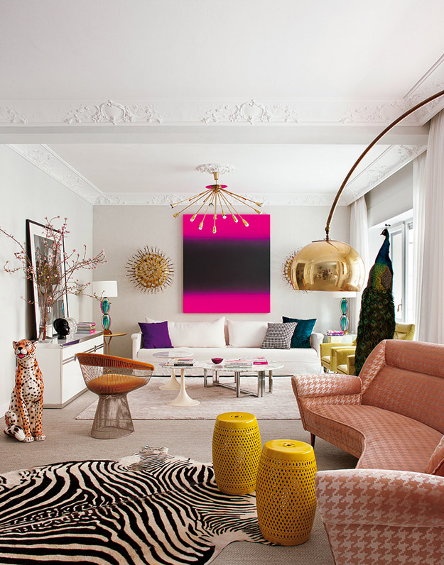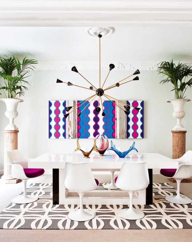 Need a little pick me up? This home ought to help! It’s retro all the way, with some names like Platner and Saarinen to keep the classics alive. Colour, pattern, light fixtures that completely rock my world. There is even a bit of a zoo with peacocks and jaguars! This is the Madrid home of interior designer Miriam Alia of Living Pink (via Nuevo Estilo).