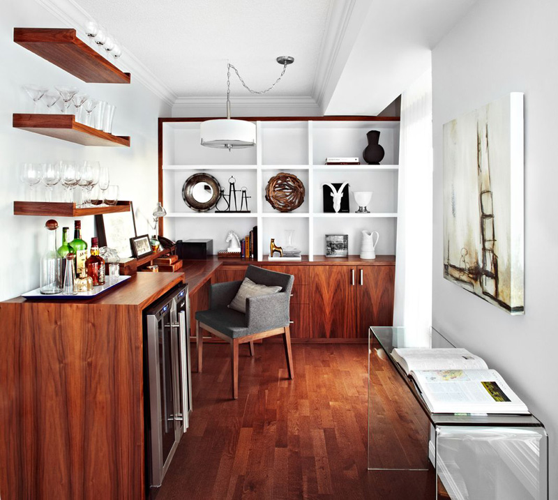 This next project involved a custom-designed walnut office. Beautiful grain that looks amazing against white. That is what I need – a bar right next to my desk. Perhaps that would make me more productive. 😉