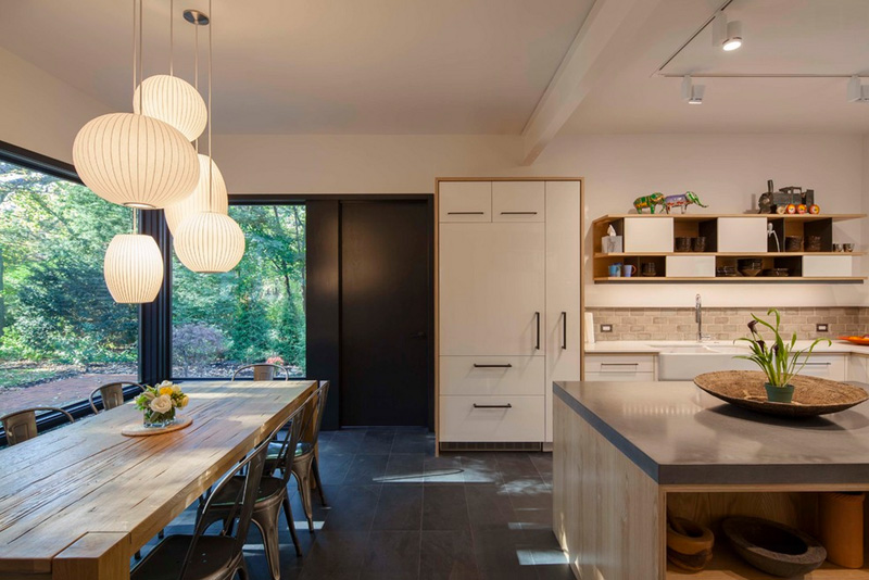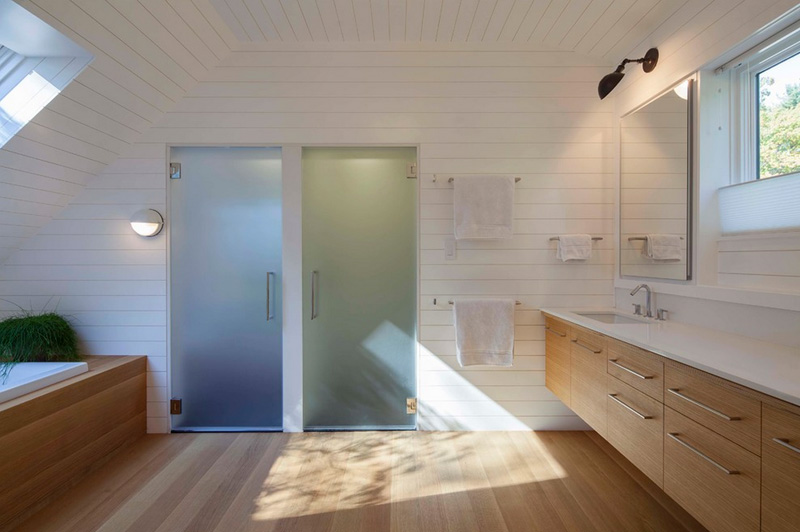 I have a fabulous renovation of a home in Cambridge, MA to share with you today. It was carried out by aamodt/plumb architects: It is a kitchen and master suite renovation which transforms a rambling Cambridge shingle-style home into a modern gallery for artwork, artifacts, scholarly pursuits and family gatherings. I really love the kitchen – modern yet warm thanks to the addition of blonde wood and helloooooo butler’s pantry! *SWOON* The master bedroom’s ensuite looks heavenly right about now – how I could use a long soak in that tub (instead of popping Aleve)! (Photos by Jane Messinger)