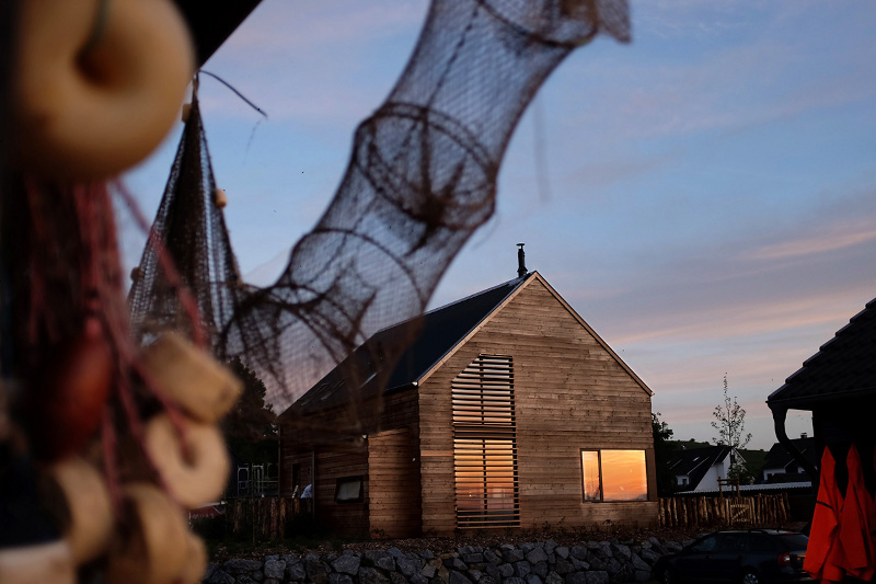Sitting snugly on the Gager marina on Rügen Island, Germany is a simple, stylish house that references its site, the history and construction of the boat houses that hug the shore. Think casual, natural materials, panoramas and light flooding in. Now think holiday rental. You’d find me sitting by the window mesmerised by the view. Strandwood House – modern, maritime style.