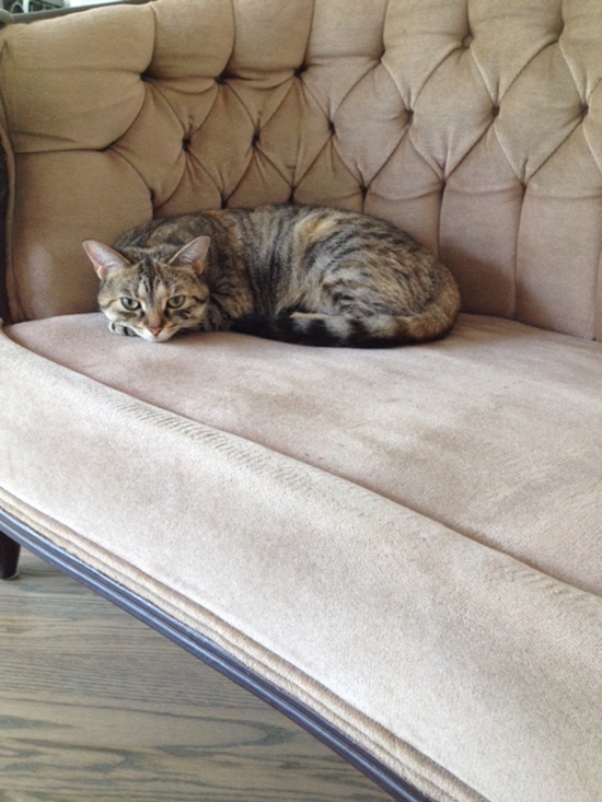 If you would like to send me photos to include in next week’s pets on furniture post, please ensure your photos follow these basic rules: First, the pet must be on a piece of furniture. And said piece of furniture must be clearly visible in the photo, so it takes center stage rather than your pet. Think of it more of a photo of a great piece of furniture that you want to show off…and your pet happens to be sitting on it. And second, if the photo is too dark or unfocused it may not make the cut. Photos, your name, location and a brief description can be sent to kim[at]desiretoinspire[dot]net. Thanks!