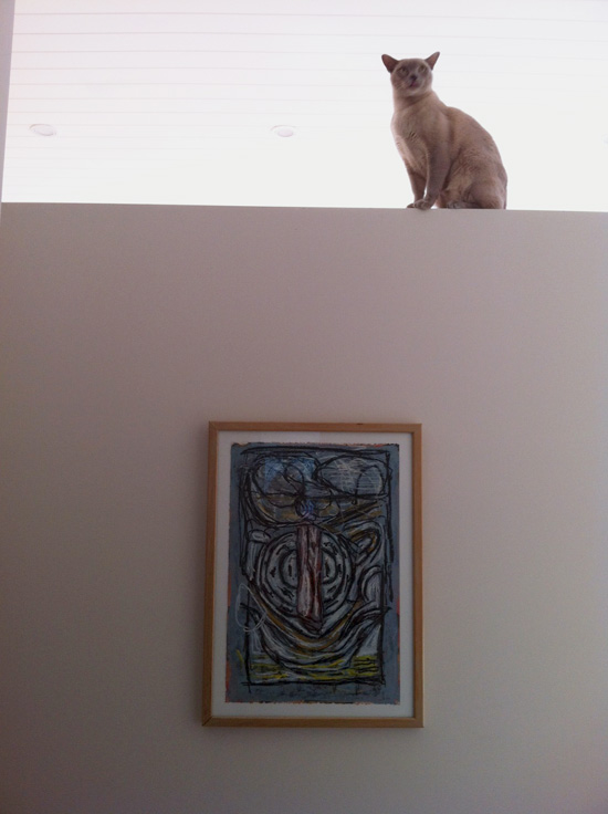 While Sprockie isn’t quite on any furniture, I thought it would make you smile anyway. This is at our newly built house in Sydney’s Alexandria.