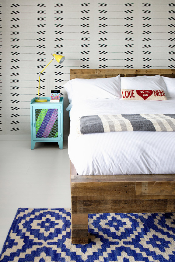 If you are ever in the Woodstock, NY area and looking for a funky place to stay, you should give Hotel Dylan a try. Designed by my favourite decorating family The Novogratz, it was a tribute to the Woodstock Music Festival of 1969, embracing sophisticated boho chic and vintage elements. Love all of the colours and patterns against the white background.