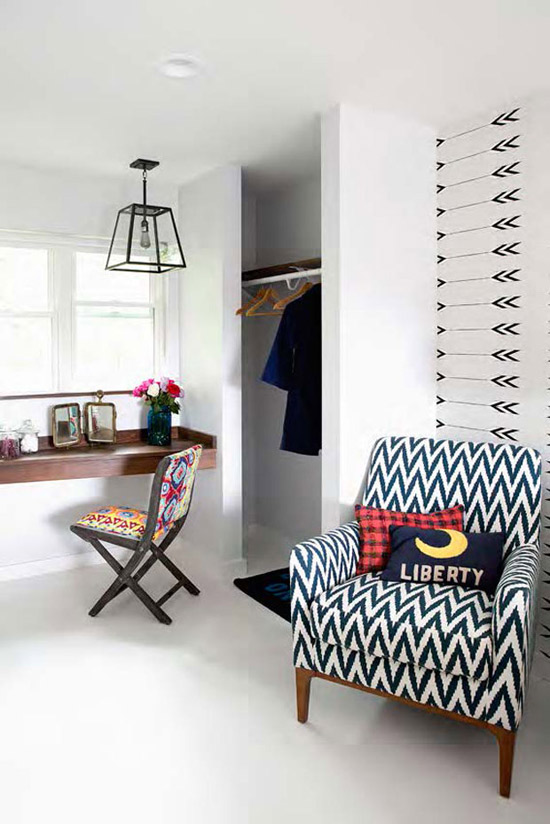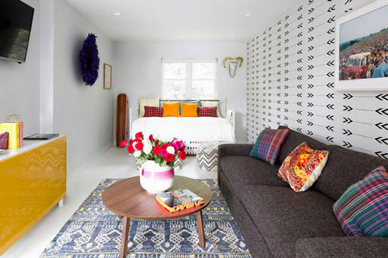 If you are ever in the Woodstock, NY area and looking for a funky place to stay, you should give Hotel Dylan a try. Designed by my favourite decorating family The Novogratz, it was a tribute to the Woodstock Music Festival of 1969, embracing sophisticated boho chic and vintage elements. Love all of the colours and patterns against the white background.