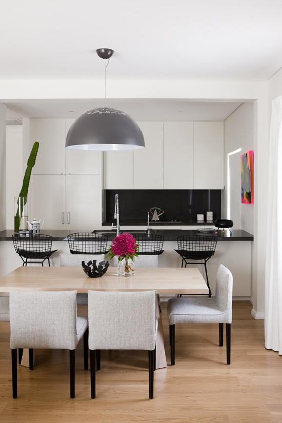 I am smitten with the clean, contemporary, never-too-serious spaces created by Newcastle, Australia interior designer Stewart Horton of Horton & Co. The kitchen above is so…perfectly classy and sexy. LOVE IT. And there is a bit more to come later in the colour of the day. 😉