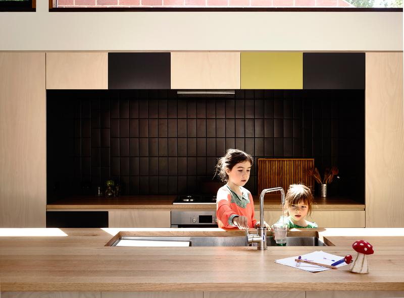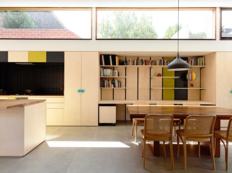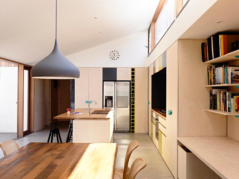 This extension to a Victorian house plays with volumes and materials, providing the young family who lives there with new living areas, a studio space and new rear entry from the laneway. Another clever design by Rob Kennon Architects. You never really know what is just down the lane.