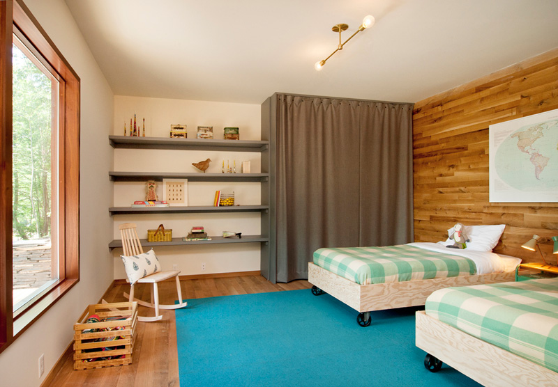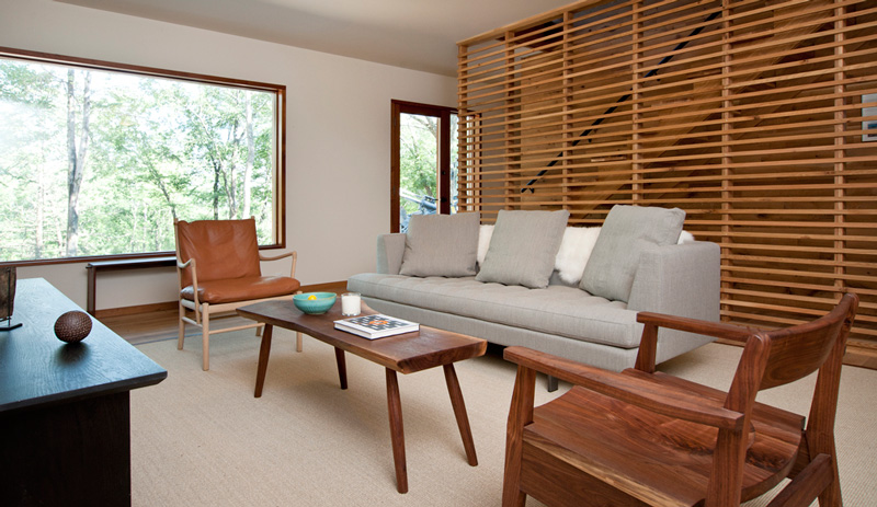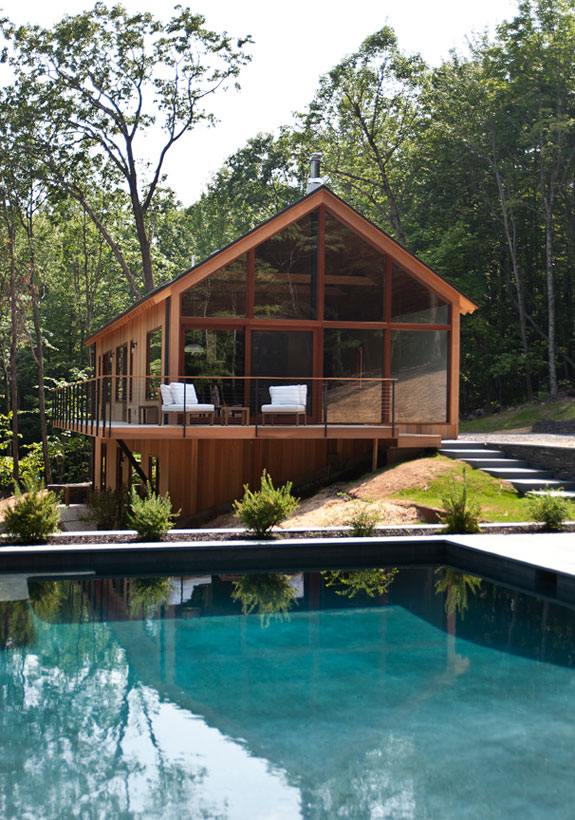 Mike Kolodesh of Lang Architecture wrote to us about a project of theirs located in Upstate New York called Hudson Woods. It is a series of really beautiful architect built eco-homes tucked away into the Catskill mountains. The perfect getaway in style! They just finished up the model home and sent us some photos to share. It has totally changed my view of ‘rustic’ cabin living. 😉 And they have styled the home so beautifully too. Living in a home like this could very well make me more tolerant of winter (I cannot believe I just typed that).