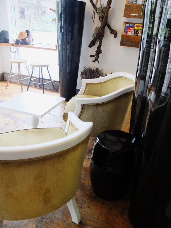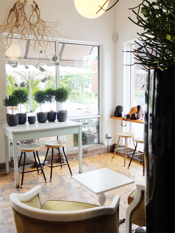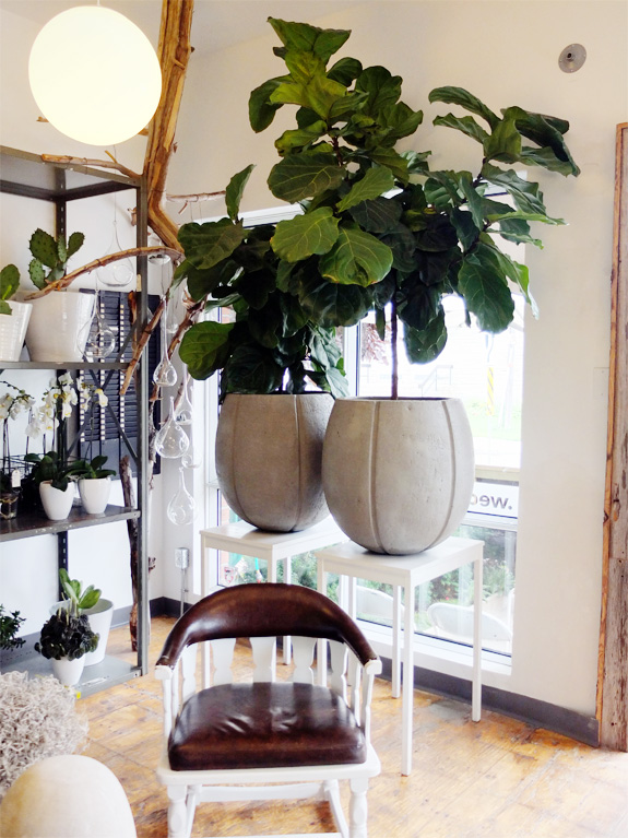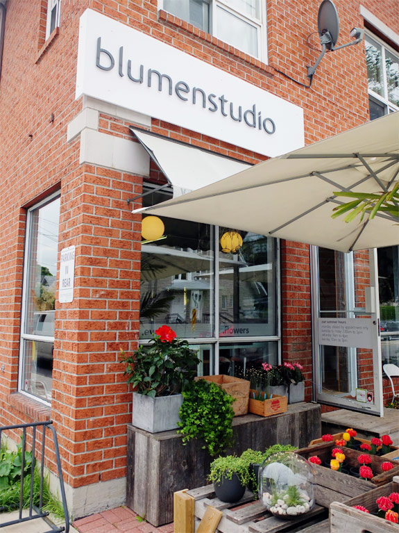 I wasn’t sure what to blog today as it has been yet another busy Saturday. Tuesday my husband and I had taken the day off work and gone to Montreal furniture shopping where we found an awesome highboy for Jeff’s dressing room and a credenza for the dining room. Yesterday we headed back to Montreal, picked up the furniture with my parent’s SUV and trailer, and drove back home – in the rain. How nerve-wracking! I thought for sure the credenza was going to get soaked and ruined but luckily it survived. I will share them here soon (and the other little things I bought that day). Until then I was wondering what to blog today, when I remembered I had taken some photos the other day that I could share. I was off work Friday as well so after a trip to the dentist and the bank I took a walk down my street to the nearest coffee shop – blumenstudio. This is not your ordinary coffee shop. It also happens to be the coolest flower/plant shop around.