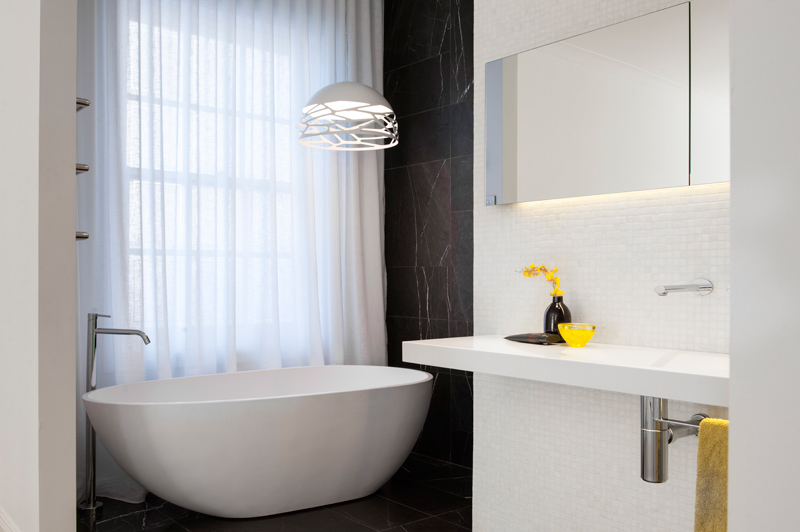Australian design firm Minosa Design has done it again, creating a bathroom retreat that is an absolute dream. The clients wanted a space that seamlessly opened up to the master retreat that included space for 2, private but open to the master bedroom, a vanity that did not look like a vanity, and subtle bling, among other items. The space was tough to work with, having only 3 walls and a large window that could not be altered. What Minosa Design came up with is brilliant and gorgeous. Check out a few before photos…