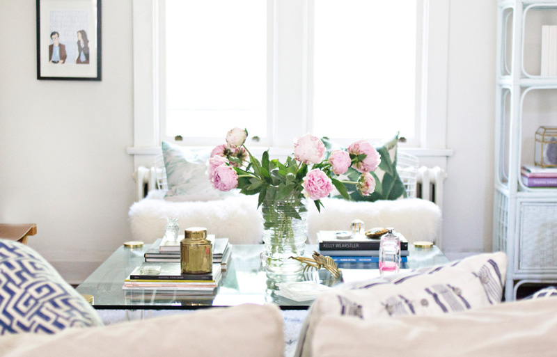 I am trying to keep summer alive for as long as possible. These spaces, my Toronto decorator and stylist Laura Colllins are as summery as they come. Lots of white with touches of blue, green and pink….it is chic and elegant yet casual and understated. We all need to go out and get some pink peonies.