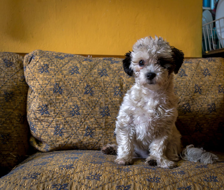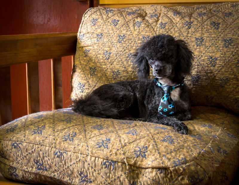 Bruno (black poodle mix) and Pequita love the same couch.