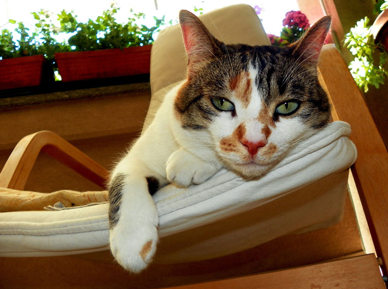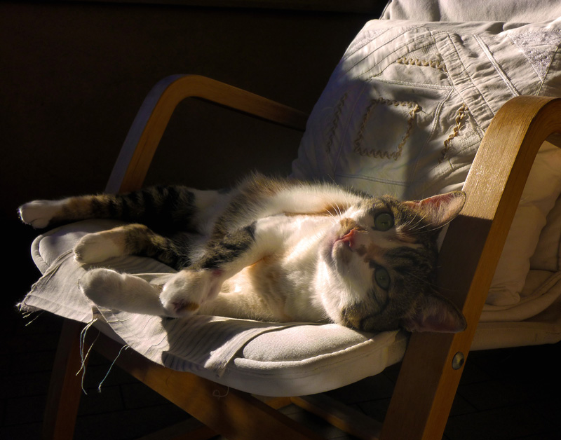 I’m always waiting with curiosity the appointment on Monday and finally Voilà Giuni, my boyfriend’s cat, 2 years old, while he relaxes in a hot summer afternoon on a lounge chair Ikea and, in the third picture, the first day that has been adopted and taken home, when immediately takes possession of the sofa! I love her!!