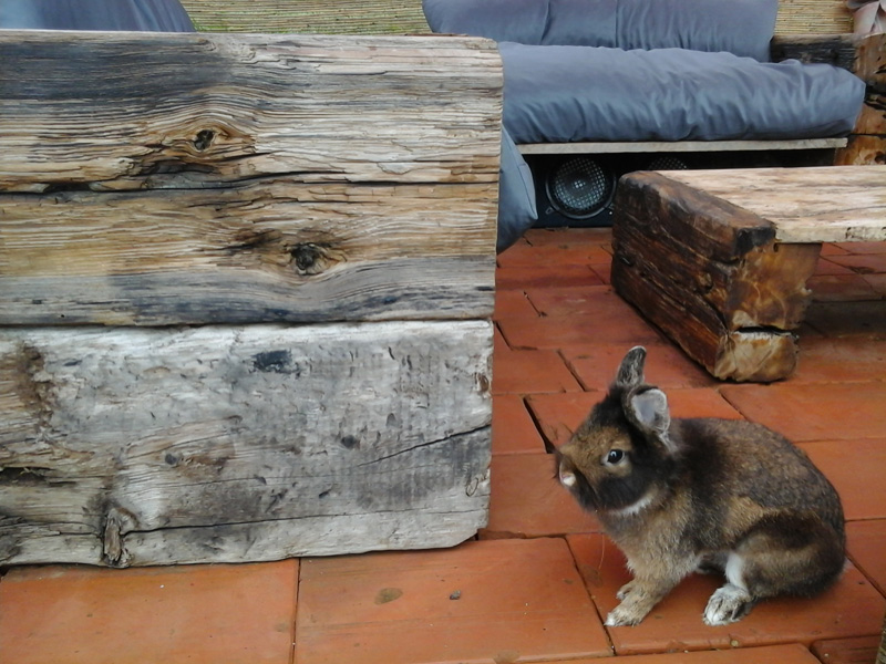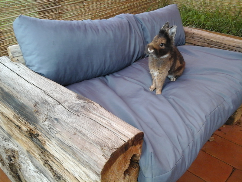 This is Bandi our funny dwarf rabbit. He sits on the garden furniture. Your website inspired us to prepare our handcrafted wood bench for the garden.