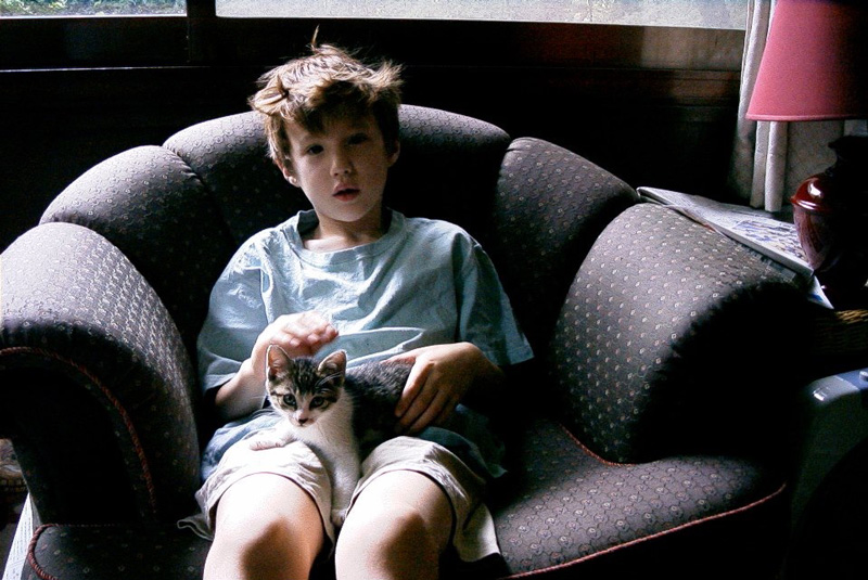 This is a picture of my younger brother and little rescue Piko on a Danish sofa. Piko passed away due to lung cancer 2 years ago at age 12, and looking at this picture brought tears to my eyes. Also, loving my brother’s hair. Classic.