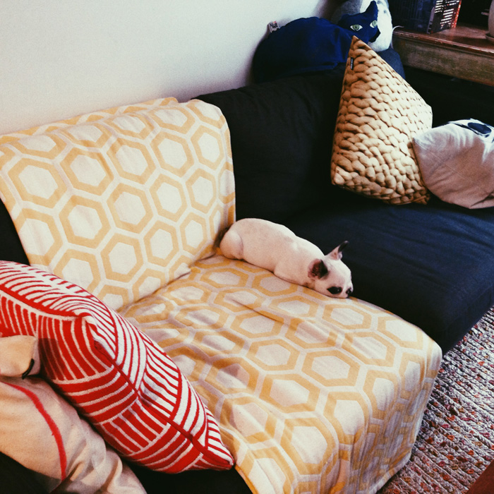 If you would like to send me photos to include in next week’s pets on furniture post, please ensure your photos follow these basic rules: First, the pet must be on a piece of furniture. And said piece of furniture must be clearly visible in the photo, so it takes center stage rather than your pet. Think of it more of a photo of a great piece of furniture that you want to show off…and your pet happens to be sitting on it. And second, if the photo is too dark or unfocused it may not make the cut. Photos, your name, location and a brief description can be sent to kim[at]desiretoinspire[dot]net. Thanks!
