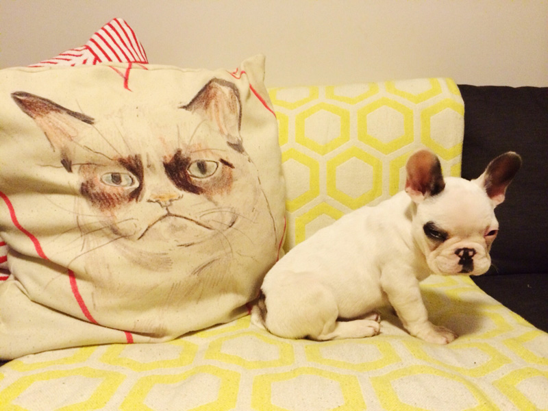 Please see the attached photo of our French Bulldog puppy Truffle. She lives in Melbourne, Australia and is three months old. (She’s on instagram @trufflethefrenchie). It was an unplanned photo, it’s the first time she’s laid down like this. She’s usually quite a character, such as the below… so to get her off guard like this was quite funny.