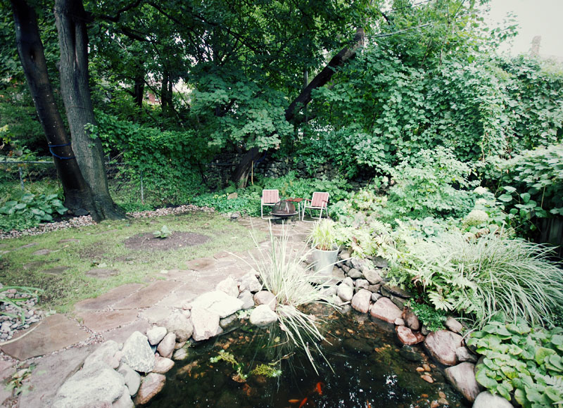 The stream leads to a pond with goldfish (formerly koi but thanks to racoons they quickly disappeared).