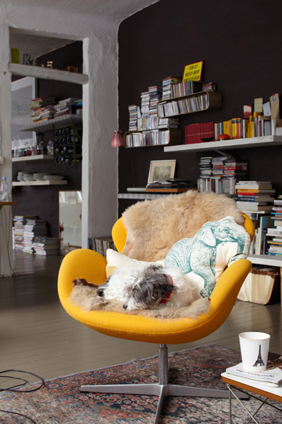 I enjoy a perfect, magazine-worthy, no-one lives here styled space but every now and then, I enjoy the simplicity and the normalcy of photos such as these, styled by Germany-based Maria Grossman. You even have a dog on a chair (it is Monday after all) and a dog on a ball/pouf.