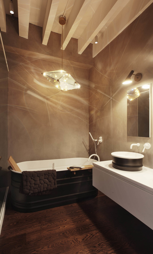 ouh la la the light in the brown bathroom….. how gorgeous is it !