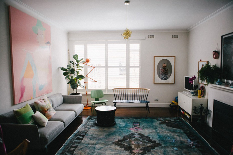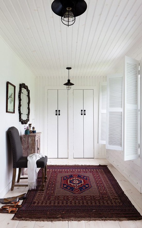 So funny, my cat with the sensitive tummy makes a beeline right for rugs when he has to barf. Runs over all the hardwood floors to the furthest rug. A new rug just got the barf blessing the other day. I guess this is also where patterned rugs are an advantage. And why our vintage silk rug is never on the floor, but rolled up in storage (sad) or hanging on a wall (now that's a solution!).