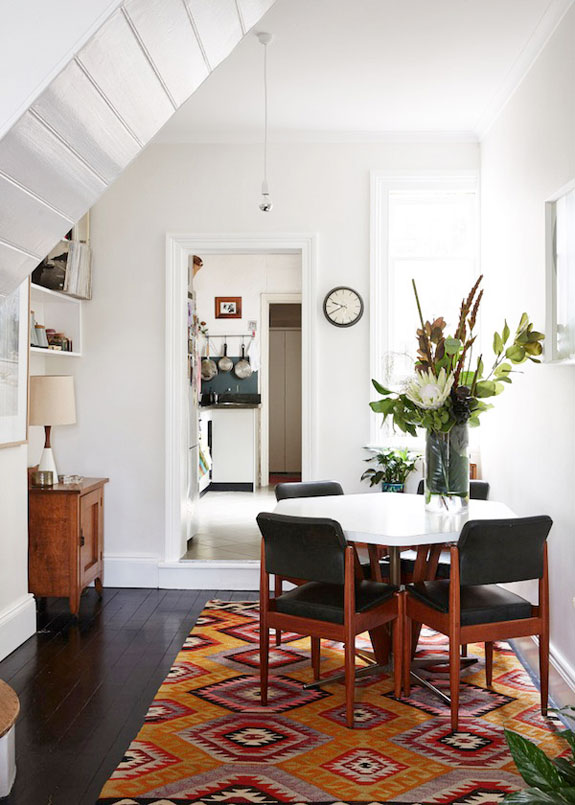 I have been thinking alot about rugs lately, as they will be a great temporary solution to hiding the gawd-awful yellow/orange stained hardwood I have going on in my new house. It had been a while since I shared a rug roundup so I am due for an update. (And if I am lucky maybe one day I will train my cats to STEP AWAY FROM THE RUGS before they barf…which is one of the reasons why I will never be able to buy a coveted beni ourain)