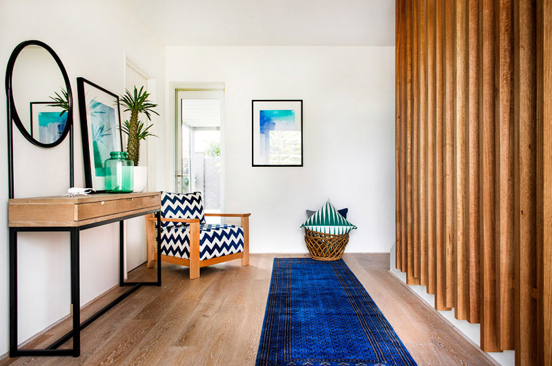 Modern and beachy, with touches of green and blues to remind you of the sea. A heavenly retreat on Cottesloe Beach, Western Australia created by Collected Interiors. Taking the inspiration from the coastal location, we utilised textures and colours inspired by nature and the ocean to accomplish airy and fresh interiors. Simple, clean, window treatments suit the beach lifestyle and louvered windows let the afternoon sea breeze in. Timber flooring was complimented by textured flat weave rugs, easy to shake off beach sand. A combination of materials and textures were used such as cotton, linen and hemp to create an organic natural feel. The colour palette of indigo and white takes inspiration from the Indian Ocean. (See more of their work here)
