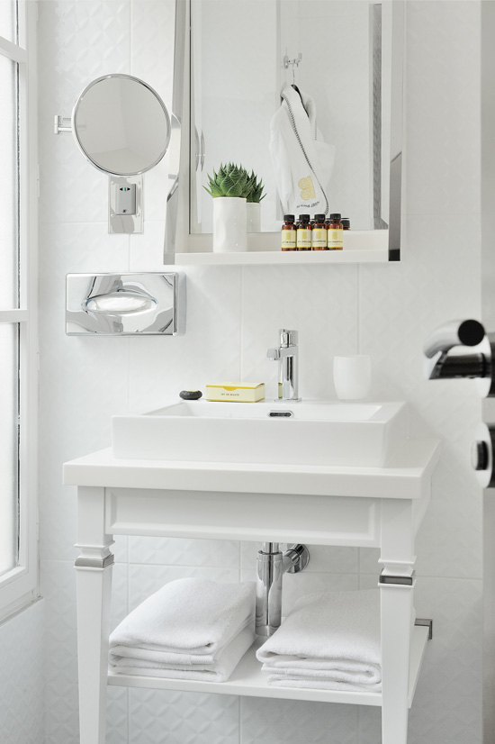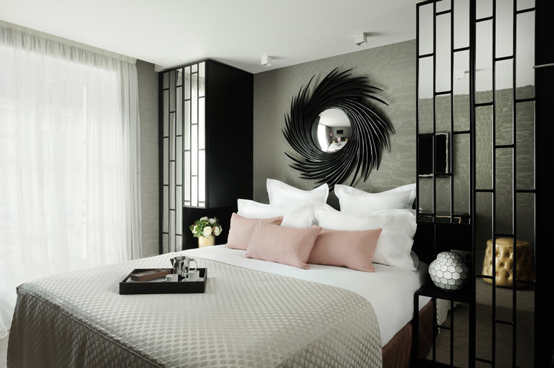 I have shared a couple of Paris hotels here in the past, specifically La Belle Juliette and Hôtel du Pantheon. Alain Bisotti sent links to photos of the latest hotel – Hôtel Baume. It is as beautiful as the others. In a couple of weeks my parents are heading to London, the Canary Islands and coincidentally Paris…I am thinking about finding a way to cram myself in one of their suitcases. And this is absolutely where I would stay. I particularly love this first room. Lovely muted tones and the pale pink and black with mirrors are perfect touches of girly glam.
