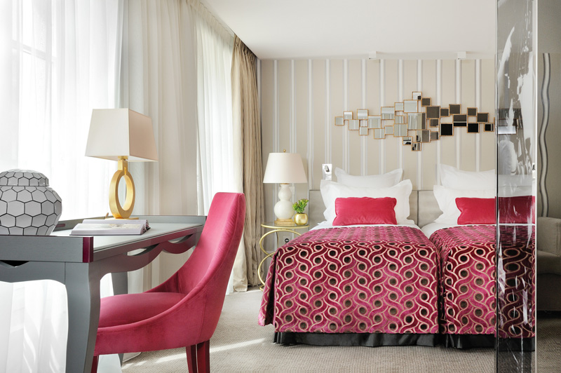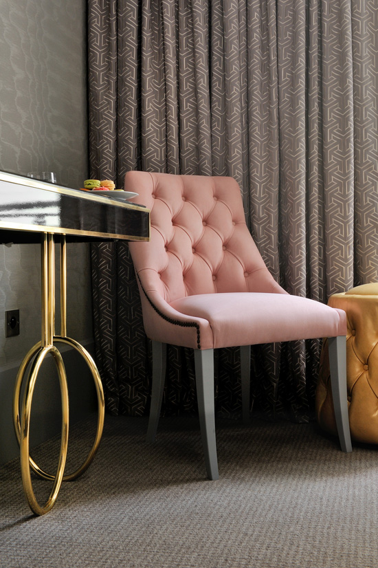 Ohhh. I need to stay in that hotel. I just fell in love with the light pink chair and the black and gold desk