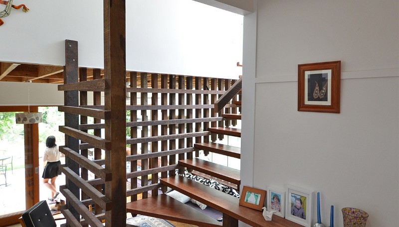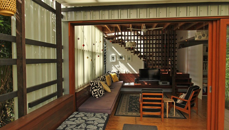 An extension and refurbishment of a Post-War cottage with lots of style and not too much cash. The trellis and vines create a seasonally changing connection to the garden while covering a basic trim-deck shell. A celebration of casual subtropical living in the suburbs of Brisbane by Aardvarc.